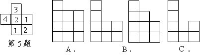 5、(10分)图表示从上面看一个由相同小立方块搭成的几何体得到的平面图形,小正方形中的数字表示该位置上小立方块的个数,则从正面看该几何体得到的平面图形为 ( )