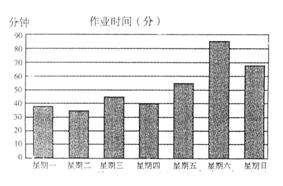 10、小红为了了解自己的学习效率,对每天在家完成课外作业所用的时间做了一周的记录,并用图表的形式表示出来,如图4所示。那么,她用时最多的一天是( )