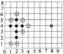 15、五子棋和象棋、围棋一样,深受广大棋友的喜爱,其规则是:15×15的正方形棋盘中,由黑方先行,轮流弈子,在任一方向上连成五子者为胜。如右图是两个五子棋爱好者甲和乙的对弈图;(甲执黑子先行,乙执白子后走),观察棋盘思考:若A点的位置记做(8,4),甲必须在__________位置上落子,才不会让乙马上获胜。
