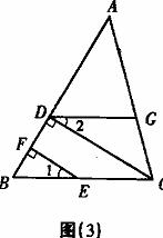 23.(6分)已知:如图(3),CD⊥AB于D,点E为BC边上的任意一点,EF⊥