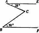 24.(6分)已知:如图(4),直线AE∥BF,∠EAC=28°,∠FBC=50°,求∠ACB的度数。