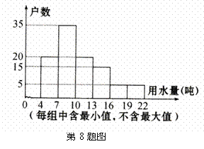 8(1)100户,(2)用水量不足10吨的有55户,用水量超过16吨的有10户;