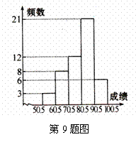 9.(1)3+8+12+21+6=50(名);(2)![]()