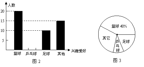 3 为响应国家要求中小学生每天锻练1小时的号召,某校开展了形式多样的“阳光体育运动”活动,小明对某班同学参加锻炼的情况进行了统计,并绘制了下面的图2和图3,请在图1中将“乒乓球”部分的图形补充完整.