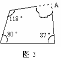 3.如图3,是一块四边形钢板缺了一个角,根据图中所标出的测量结果得所缺损的∠A的度数为_________.