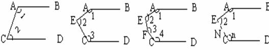 (4)试探究∠1+∠2+∠3+∠4+…+∠n= ;(4分)