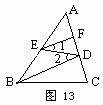 (本题10分)如图13,已知∠AED=60°,∠2=30°,EF平分∠AED,可以判断EF∥BD吗?为什么?