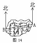 (本题10分)如图14,A、B之间是一座山,一条高速公路要通过A、B两点,在A地测得公路走向是北偏西111°32′。如果A、B两地同时开工,那么在B地按北偏东多少度施工,才能使公路在山腹中准确接通?为什么?