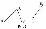 21、(本题10分)如图15,经过平移,△ABC的边AB移到了EF,作出平移后的三角形,你能给出两种作法吗?请表述出来。