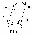 24、(本题14分)如图18,(1)已知AB∥CD,EF∥MN,∠1=115°,求∠2和∠4的度数;