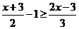 解:去分母,得 3(x+3)-6≥2(2x-3)