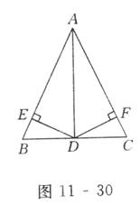 3.如图11-30所示,已知AB=AC,D是BC中点,DE⊥AB于E,DF⊥AC于F.试说明DE=DF.