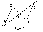 15.已知:如图3-42,AB=DC,AD=BC,O是DB的中点,过O点的直线分别交DA和BC的延长线于E,F.求证:∠E=∠F.