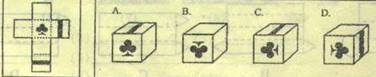 2、将左边的平面图形沿虚线折叠成一个立体图形后,右边的图形( )是左边图形折成的