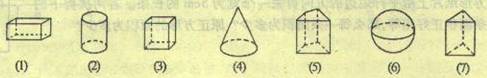 3、分别写出以下的各几何图形的名称为:(1)_____,(2)______,(3)______,(4)________,(5)______,(6)____(7)______