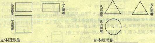 4、如图所示,是一些立体图形从不同方向看它得到的平面图形,请写出立体图形的名称。