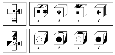 24.想一想,将左边的图形折成一个立方体,右边的四个立方体哪一个是左边图形折成的?