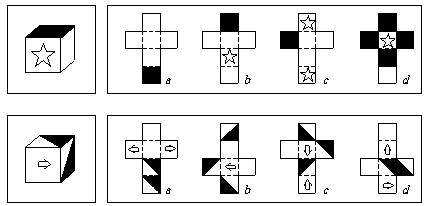 25.想一想,将左边的盒子展开成为一个十字型图形。右边的四个图形中,那一个是左边盒子展开后得到的图形?