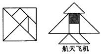 14.用七巧板可以拼出许多独特且有意义的图形,如图是用七巧板拼出的航天飞机图案,请你用七巧板再设计一个图案,并写上一句贴切、诙谐的解说词.