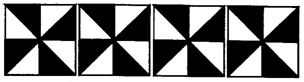 [解] (1)可由一个黑白相间的正方形通过平移变换得到.(或由两个黑白相间的三角形先通过旋转得到一个正方形,再平移).