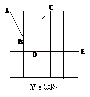 8. 如图是5×5的正方形网络,以点D、E为两个顶点作位置不同的格点三角形,使所作的格点三角形与△ABC全等,这样的格点三角形最多可以画出 ( )