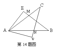14.如图,已知:∠E=∠F,∠B=∠C,AE=AF,试说明:⑴△ABE≌△ACF;⑵BM=CN.