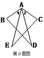 9. 如图,已知AB=AC,AE=AD,∠1=∠2,你能说明△ABD≌△ACE吗?