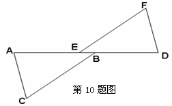 10. 如图,A、E、B、D在同直线上,在△ABC和△DEF中,AB=DE,AC=DF,AC∥DF。
