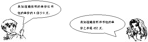 7. 小英和小强相约一起去某超市购买他们看中的随身听和书包.你能根据他们的对话内容(如图),求出他们看中的随身听和书包单价各是多少元吗?