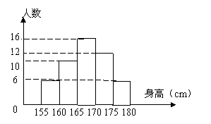 7、(本题7分)为了解某中学男生的身高x(cm)情况,随机抽取若干名男生进行身高测量,将所得到的数据整理后分成155≤x<160,160≤x<165,165≤x<170,170≤x<175,175≤x<180五组,画出频数分布直方图(如下图),图中从左到右依次为第1、2、3、4、5组。