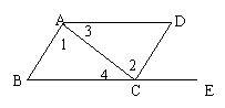 A、∠1=∠2 B、∠B=∠DCE C、∠3=∠4 D、∠D+∠DAB=180°