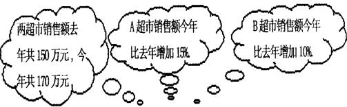 2.九年级(3)班的一个综合实践活动小组去A、B两家超市调查去年和今年“五一节”期间的销售情况,下图是调查后小敏与其他两位同学进行交流的情景,根据他们的对话请你分别求出A、B两家超市今年“五一节”期间的销售额.