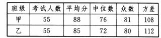 10.初中三年级上学期期末统一考试后,甲、乙两班的数学成绩(单位:分)的统计情况如下表所示: