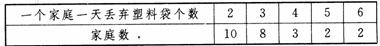 15.为了创建绿色家园,从2008年6月1日起,全国将统一禁止国内各超市向顾客无偿提供塑料袋.这天本市环保局向永丰花苑小区居民发放了500只环保布袋,以减少使用塑料袋产生的白色污染.为了了解塑料袋白色污染的情况,某校七(2)班的同学对有2500户居民的某小区的25个家庭进行了一天丢弃塑料袋情况的调查,统计结果如下;