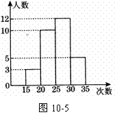 18.为了了解本校九年级学生的体能情况,随机抽查了其中30名学生,测试了1分钟仰卧起坐的次数,并绘制成如图10-5所示的频数分布直方图,请根据图示计算,仰卧起坐次数在25-30次的频率为(   )
