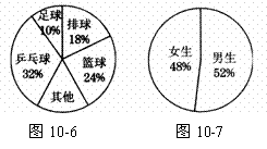 23.某班喜欢乒乓球、排球、足球、篮球4项球类活动的人数如图l0-6所示,若全班人数为50人,体育委员组织一次排球比赛,估计会有(  )人积极参加排球比赛.