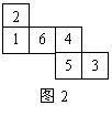 19、一个均匀的立方体六个面上分别标有数1、2、3、4、5、6,如图2,是这个立方体表面的展开图,抛掷这个立方体,则朝上一面的数恰好等于朝下一面上的数的
