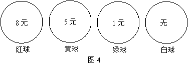 学校门口经常有小贩搞摸奖活动,某小贩在一只黑色的口袋里装有只有颜色不同的50只小球,其中红球1只,黄球2只,绿球10只,其余为白球,搅拌均匀后,每2元摸1个球,奖品的情况标注在球上,如图4.