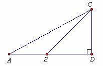 20. 如图,∠D=90°,从A处观测C时仰角∠CAD=30°,从B处观测C处时仰角∠CBD=45°,从C处观测A、B两处时视角∠ACB是多少?