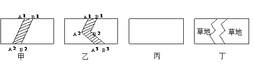(3)联想与探索:如图丁,在一个矩形草地上,有一条弯曲的柏油小路(小路任何地方的水平宽度都是1个单位),请你猜想空白部分表示的草地面积是多少?并说明你猜想的正确性.