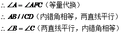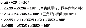 C.∵AD∥BC,∴∠BCD+∠ADC=180° D.∵∠1+∠2+∠C=180°,∴BC∥AD