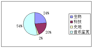 19、某同学就“你对哪些课程非常感兴趣”在全班进行了调查,并得出了下表中的调查结果: