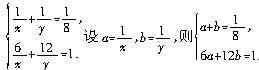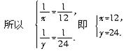 经检验,符合题意.即甲组单独完成需12天,乙组单独完成需24天.再设甲组工作一天应得m元,乙组工作一天应得n元.