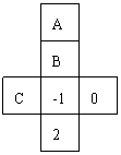 如图是一个正方形盒的展开图,若在其中的三个正方形A、B、C 、内分别填入适当的数,使得它们折成正方形后相对的面上的两个数互为相反数,则 填入正方形A、B、C内的三个数依次为( )
