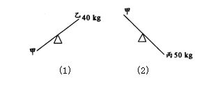 1.(2005年辽宁省大连市)如图1,图2是甲、乙、丙三人玩跷跷板的示意图(支点在中点处),则甲的体重的取值范围在数轴上表示正确的是( )