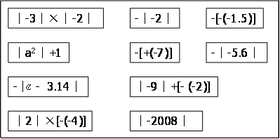 七年级(2)班“数学晚会”上,10个同学藏在大盾牌后面,男同学的盾牌上所示的式子的结果是正数,女同学的盾牌上所示的式子的结果是负数,这10个盾牌上所示的式子如下图: