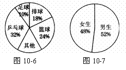 23.某班喜欢乒乓球、排球、足球、篮球4项球类活动的人数如图l0-6所示,若全班人数为50人,体育委员组织一次排球比赛,估计会有(  )人积极参加排球比赛.