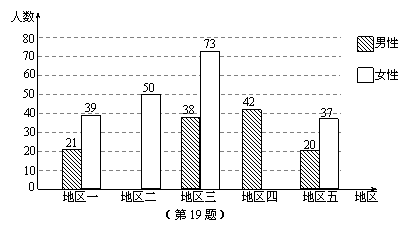 19. (本题10分)随着我国人民生活水平和质量的提高,百岁寿星日益增多.某市是中国的长寿之乡,截至2008年2月底,该市五个地区的100周岁以上的老人分布如下表(单位:人):