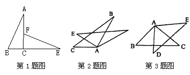 3.如图,△ABC绕点A旋转后与△ADE完全重合,则△ABC≌△_______,那么两个三角形的对应边为__ ___,__ ___,___ __,对应角为____ __,____ ___,___ ____.