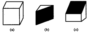 7.下列图形中,图(a)是正方体木块,把它切去一块,得到如图(b)(c)(d)(e)的木块.